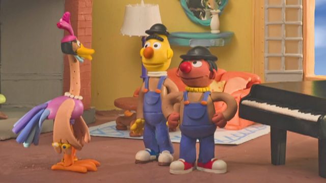 Ernie und Bert als Klavierträger